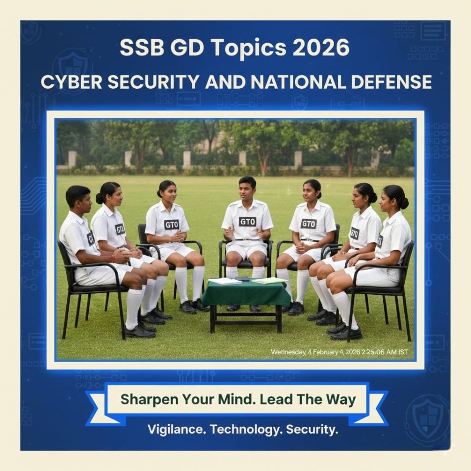 In the digital age, cyber security has become as critical as traditional defense. With increasing reliance on technology, India faces threats ranging from hacking and espionage to cyber warfare. This GD topic tests aspirants on awareness of modern challenges, strategic thinking, and solution‑oriented leadership.