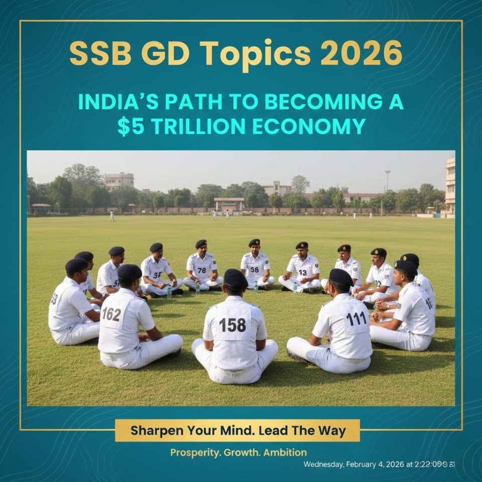 India has set an ambitious target of becoming a $5 trillion economy in the near future. This goal reflects aspirations of growth, global influence, and improved living standards. For SSB aspirants, this topic tests awareness of economics, governance, and national priorities.
