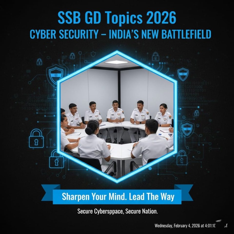 In the digital age, wars are no longer fought only on land, sea, or air. Cyber security has become a critical frontier for national defense. India faces challenges from hacking, espionage, and cyber terrorism, making this GD topic highly relevant for aspirants.
