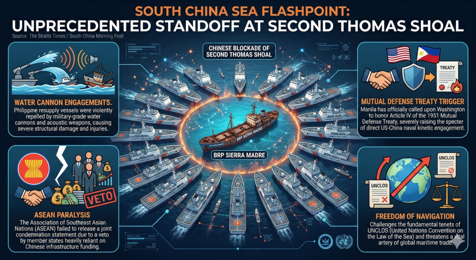 - Mutual Defense Treaty Trigger: Manila has officially called upon Washington to honor Article IV of the 1951 Mutual Defense Treaty, severely raising the specter of direct US-China naval kinetic engagement.
