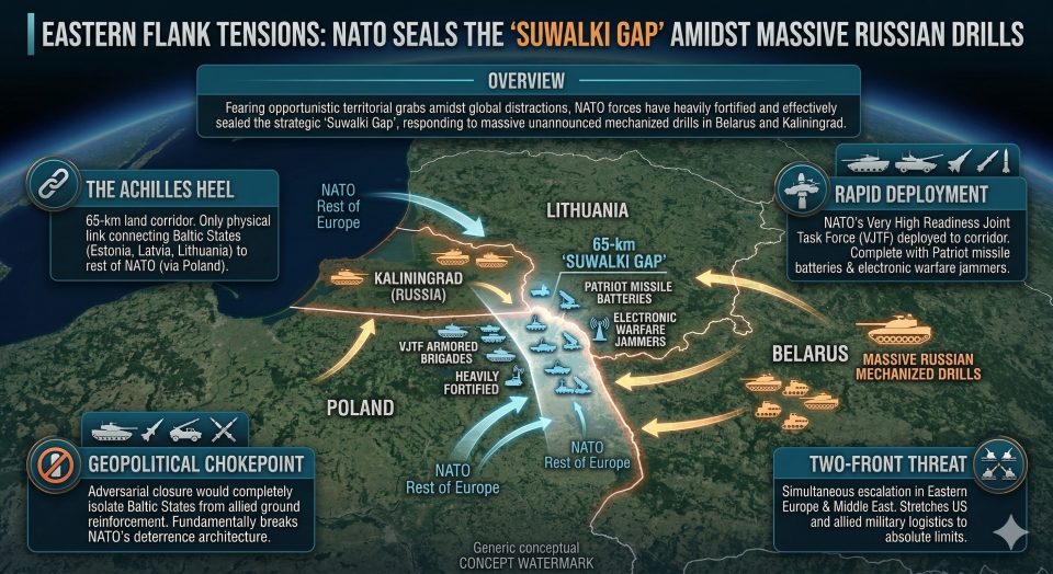 - The Achilles Heel: The 65-km land corridor is the only physical link connecting the Baltic States (Estonia, Latvia, Lithuania) to the rest of NATO (via Poland).