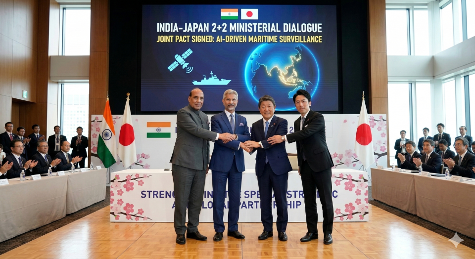 - Overview: Strengthening their “Special Strategic and Global Partnership,” India and Japan concluded their 2+2 Ministerial Dialogue in Tokyo by signing a landmark agreement to jointly deploy Artificial Intelligence for maritime surveillance in the Indo-Pacific.