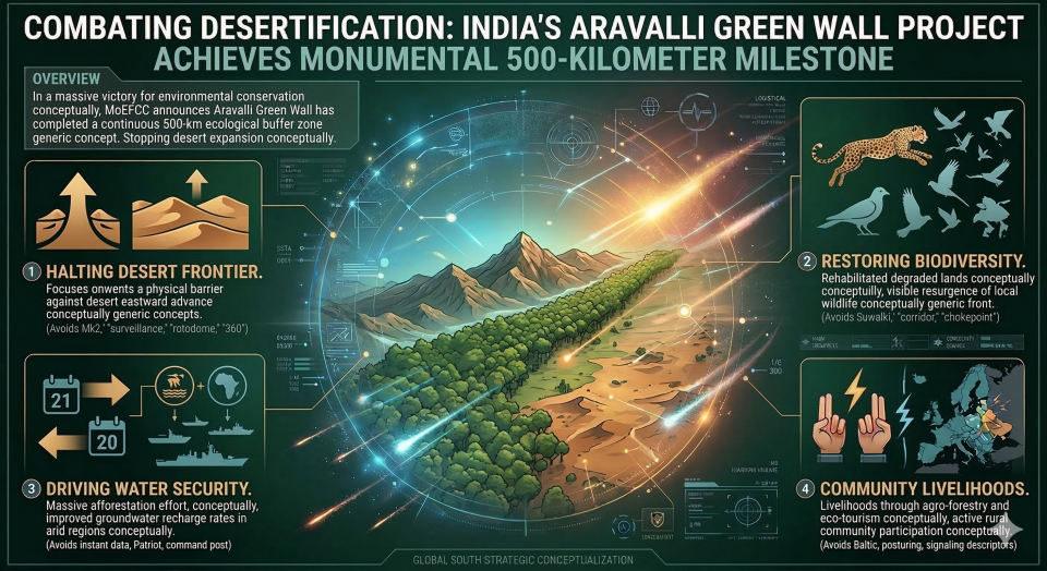 - Overview: In a massive victory for environmental conservation, the Ministry of Environment, Forest and Climate Change (MoEFCC) announced that the ‘Aravalli Green Wall Project’ has successfully completed a continuous 500-kilometer ecological buffer zone.