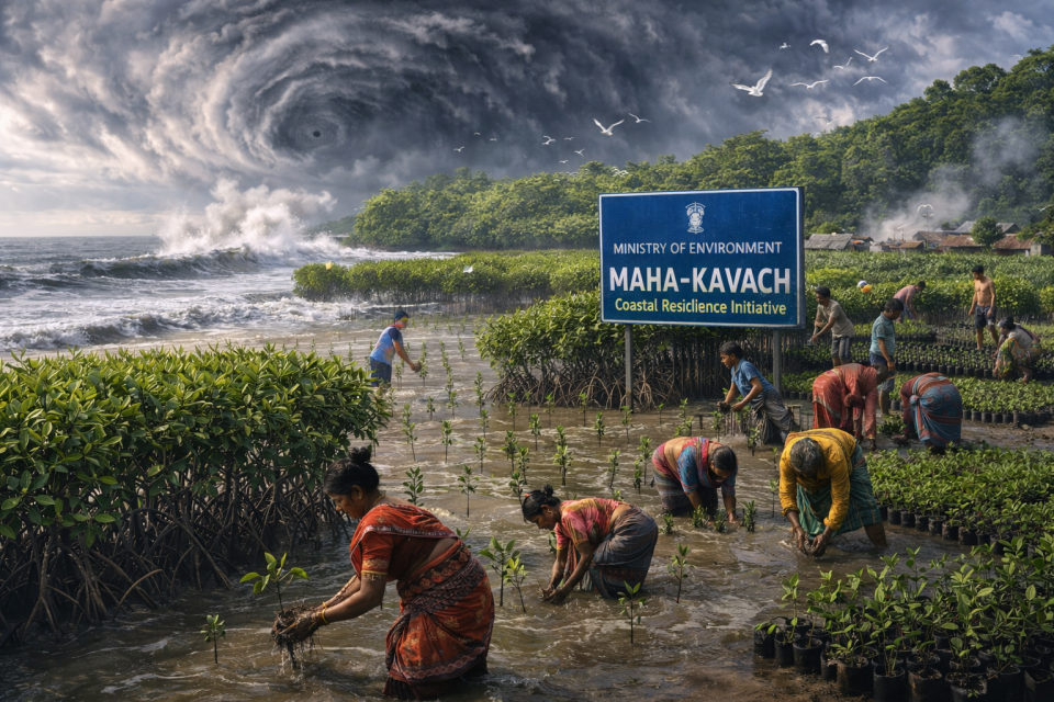 - Overview: In a monumental push to protect its vulnerable eastern seaboard from the devastating effects of climate-induced super cyclones, the Ministry of Environment has officially launched the ‘Maha-Kavach’ (Great Shield) Coastal Resilience Initiative.