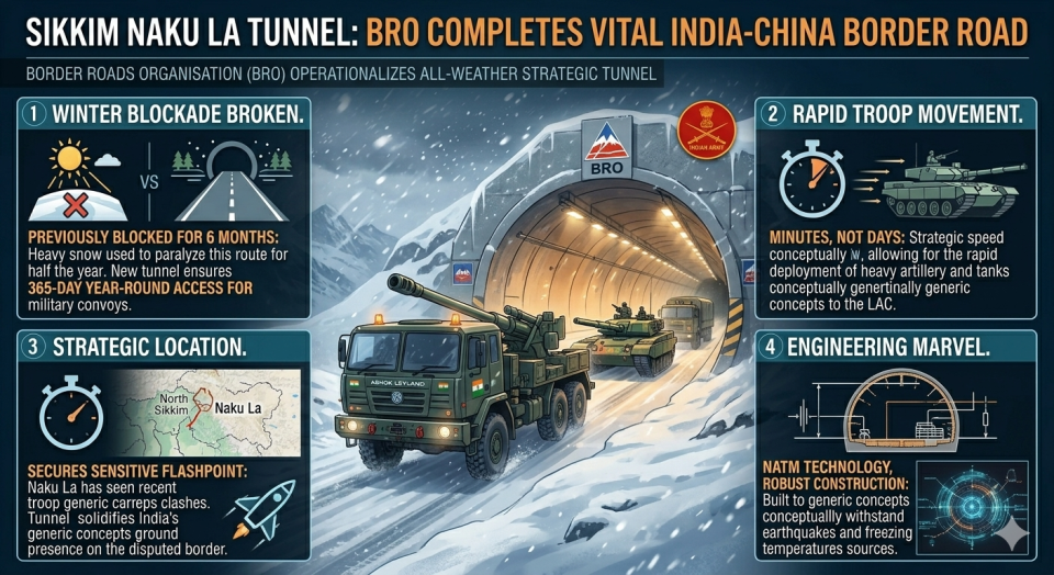 - Overview: Border logistics just got a massive upgrade. The Border Roads Organisation (BRO) officially completed a highly strategic, all-weather tunnel near the Naku La pass in North Sikkim.
