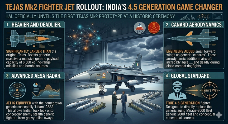 - Global Standard: The Tejas Mk2 is a true 4.5-generation fighter. It is designed to directly replace the aging Mirage-2000 fleet and rival global heavyweights like the Eurofighter Typhoon.