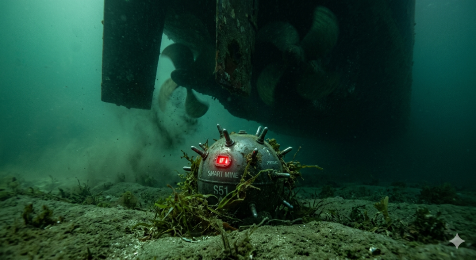 - AI Sea Mines: Unlike old sea mines that float on the surface, these smart mines sit quietly on the ocean floor. They use AI acoustic sensors to listen for the specific engine noise of large oil tankers before launching upward to strike.